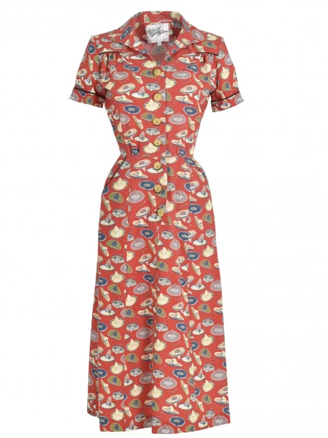 Our Tea Dresses are back in a gorgeous new range of bespoke prints with a totally authentic Vintage style! This is one from our Pink Label range, made by us exclusively with a heavy influence from Vintage fabrics.