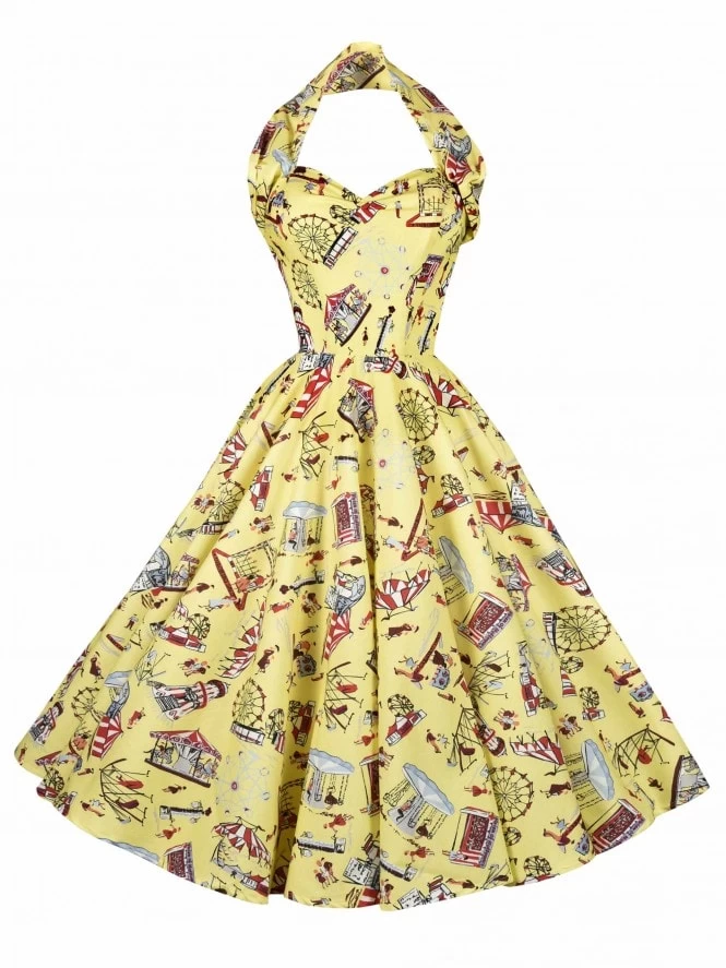 Our fabulous 1950s Halterneck Circle Dress is here in our beautiful bespoke print, just perfect for the sunshine!