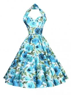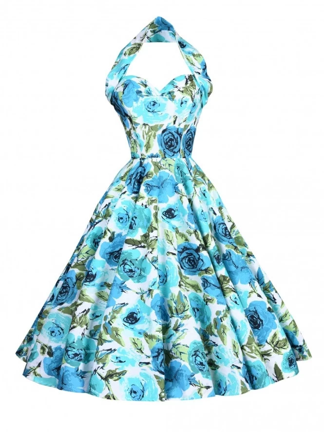 Our fabulous 1950s Halterneck Circle Dress is here in our beautiful bespoke print, just perfect for the sunshine!
