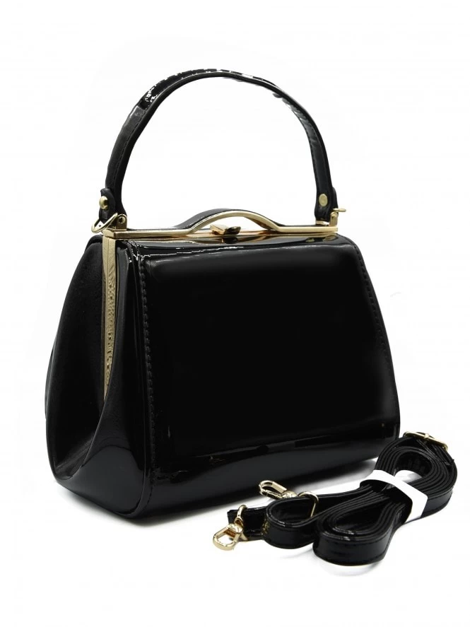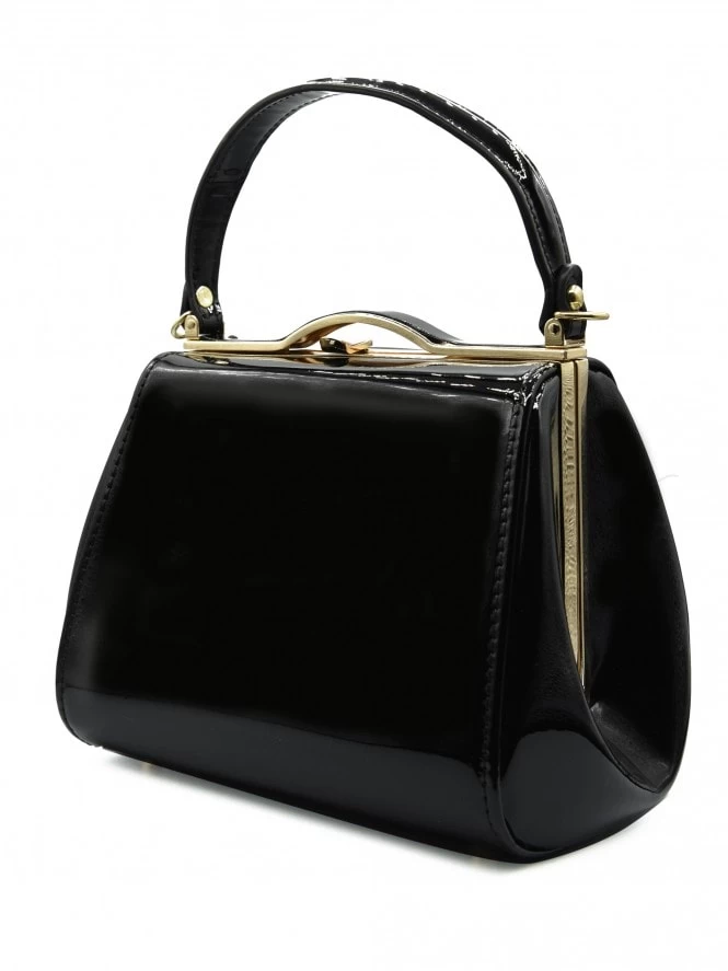 This stunning patent handbag is the perfect piece to accompany an evening dress. With its simple design but shiny finish, this bag is a must-have staple accessory.