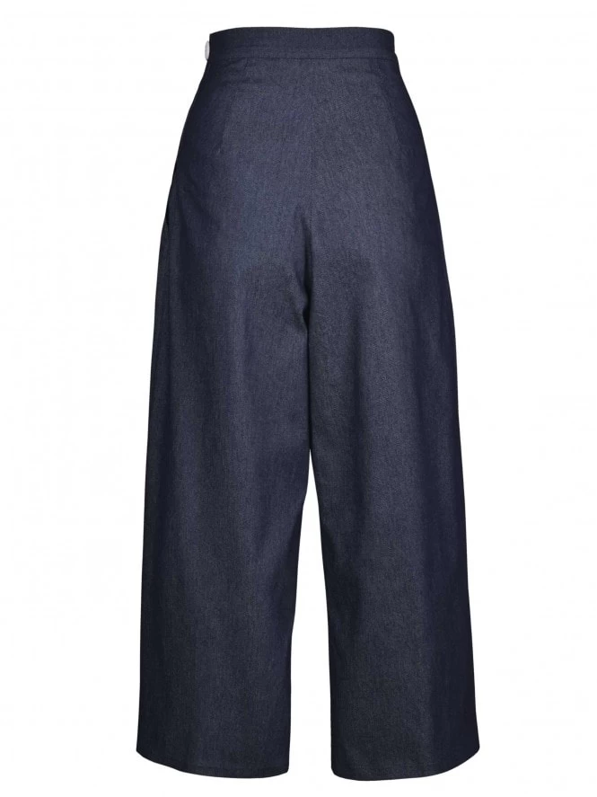 These culottes are just a dream for casual days. They fit just like our famous Katharine trousers with their gorgeous high waist and low crotch but are cropped for that cool casual vibe. Perfect for daytime, a real utility garment. The denim is velvet soft.