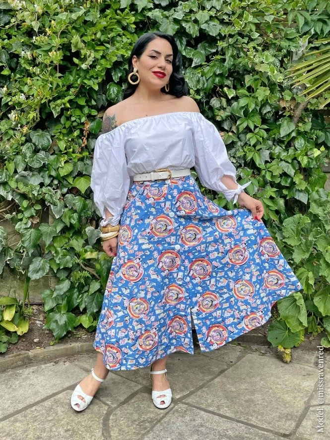 Button Betty Skirt Casino Blue