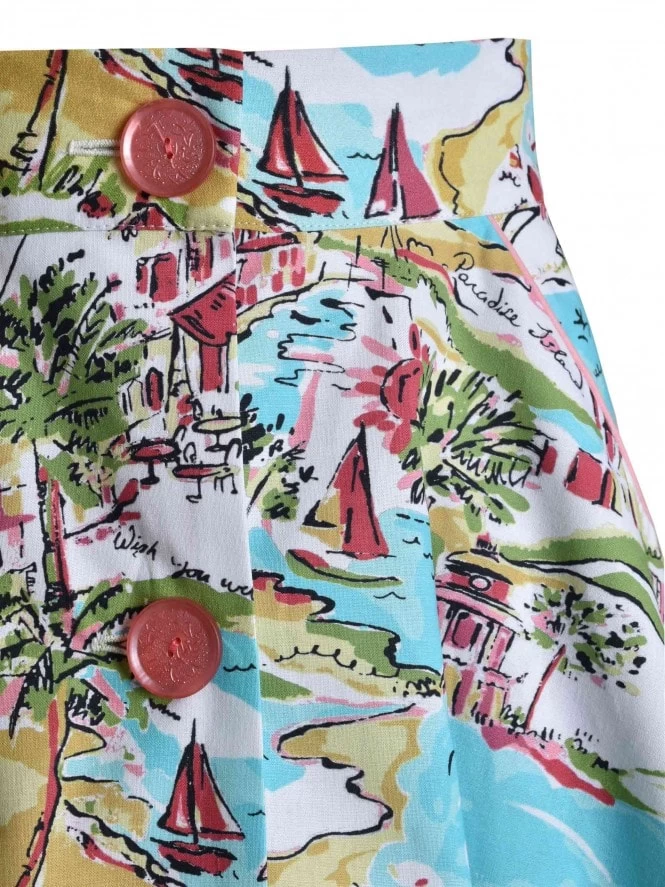 A full Aline shape with piped side pockets. She buttons down the front to show as little or as much leg as you like. Just perfection when teamed with our suntop and Shorts.