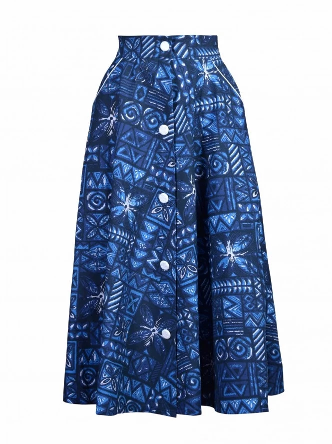 A full Aline shape with piped side pockets. She buttons down the front to show as little or as much leg as you like. Just perfection when teamed with our sun top and Shorts.