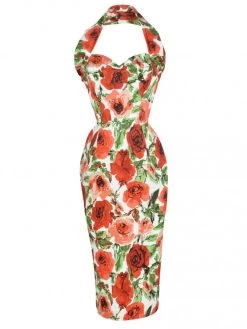 Halterneck Pencil Roses In Bloom Red Dress