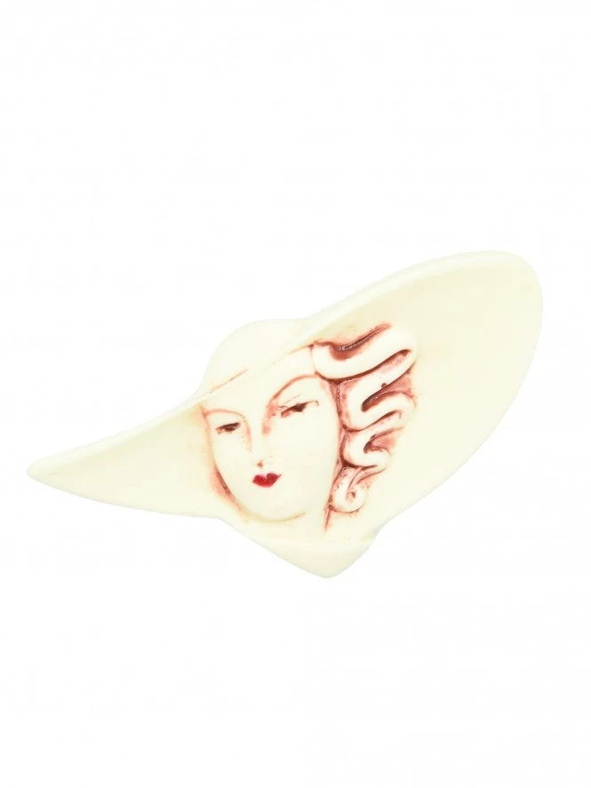 This gorgeous brooch has been handmade in England by Amelia Smith. With delicate hand painted features it makes the perfect gift for your vintage loving friend or even just yourself! Pin to your Jenny Cardigan or your favourite Vivien Of Holloway jacket for a dazzling vintage look.