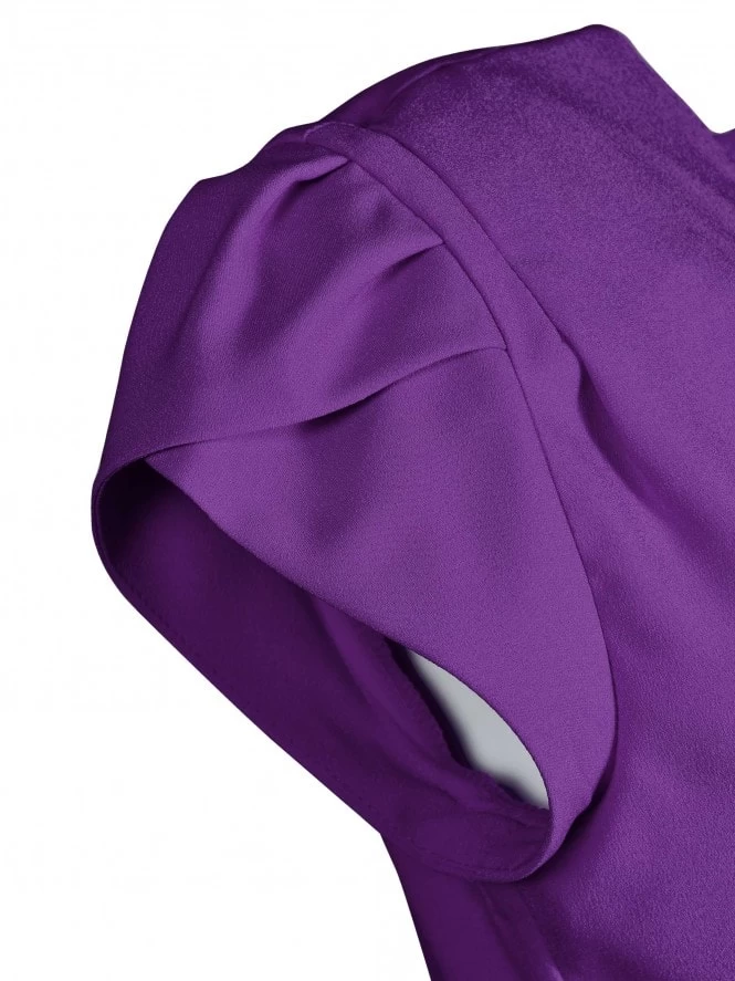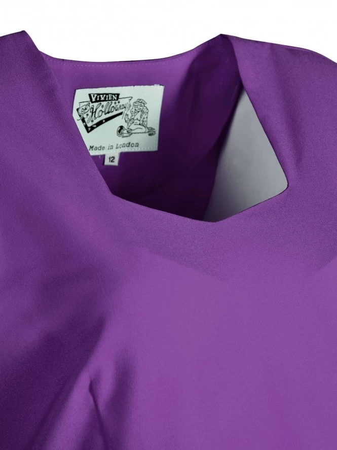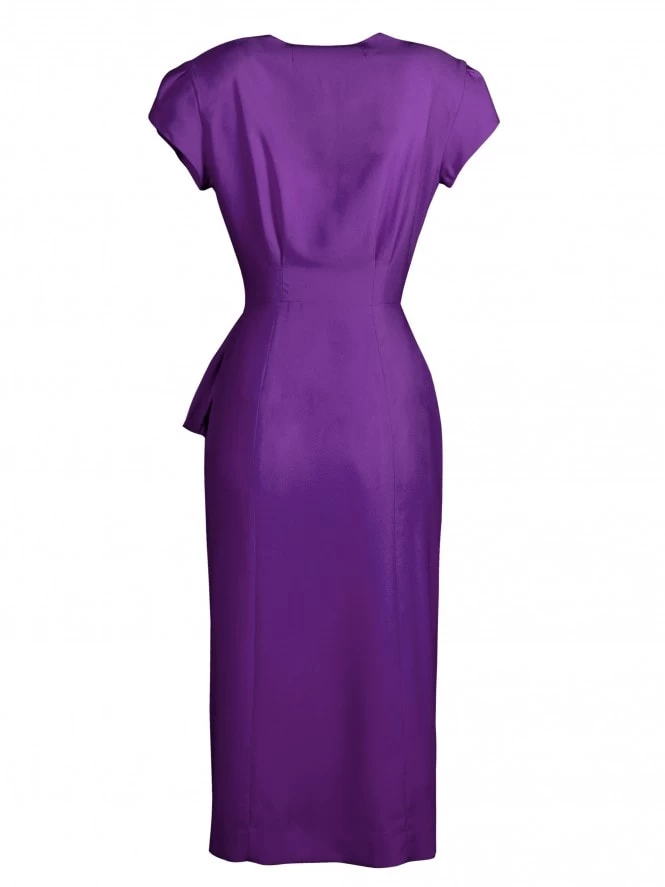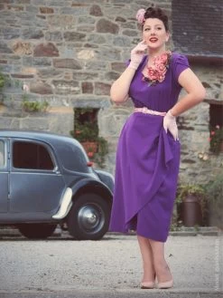 Reincarnation of our very first 1940’s style dress, Gloria drapes beautifully over your curves for a truly authentic feel and look. She has a Sweetheart neck, tulip sleeves, nipped-in waist, and waterfall effect on the hip for just a flash of leg.