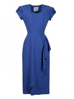 Reincarnation of our very first 1940’s style dress, Gloria drapes beautifully over your curves for a truly authentic feel and look. She has a Sweetheart neck, tulip sleeves, nipped-in waist, and waterfall effect on the hip for just a flash of leg.