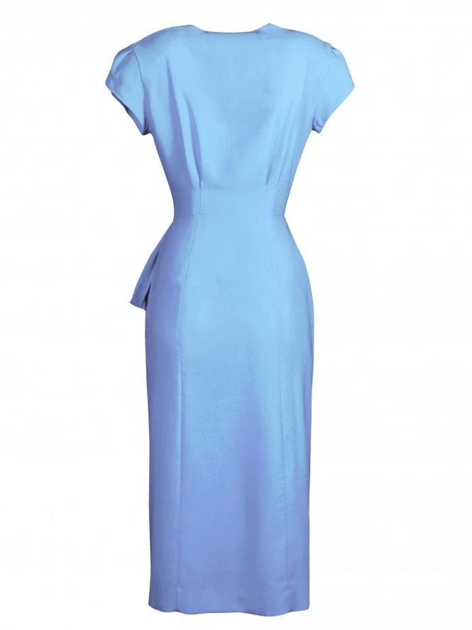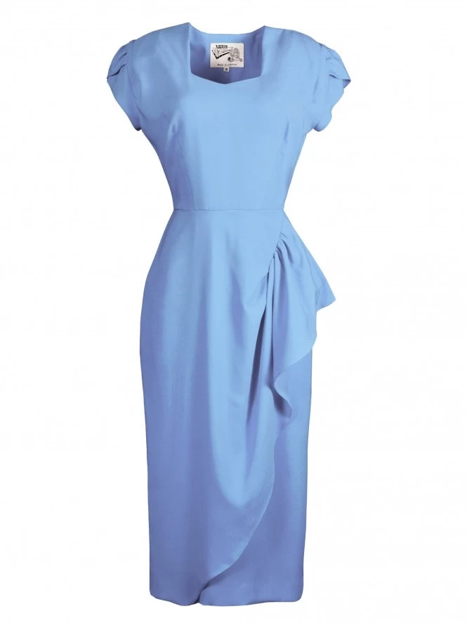 Reincarnation of our very first 1940’s style dress, Gloria drapes beautifully over your curves for a truly authentic feel and look. She has a Sweetheart neck, tulip sleeves, nipped-in waist, and waterfall effect on the hip for just a flash of leg.