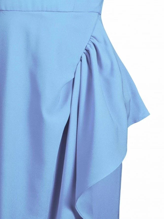 - Sweetheart neck, tulip sleeves, waterfall skirt