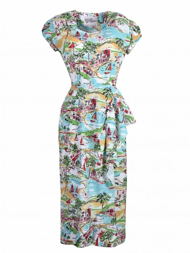 This reincarnation of our very first 1940’s style dress is made in our Stunning New Bespoke prints, Gloria drapes beautifully over your curves for a truly authentic feel and look.