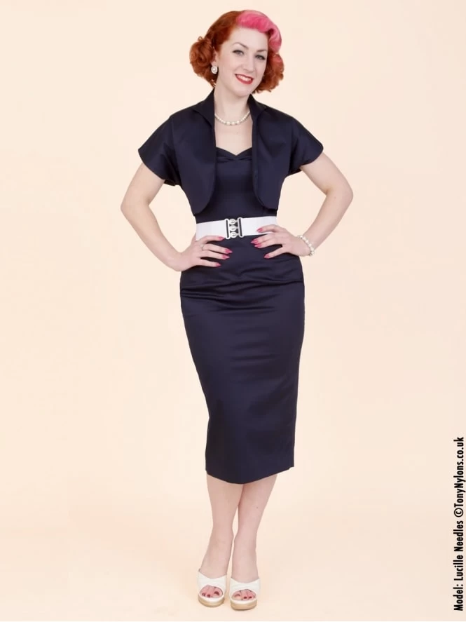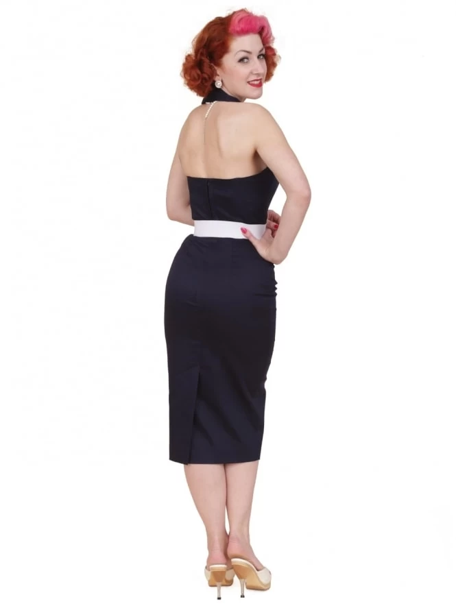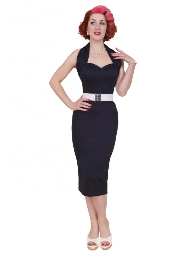 Our beautiful Halterneck Pencil Dresses work wonderfully in our cotton sateen fabric. They can be worn anywhere, from the office to a summer picnic, it all depends on how you dress them up or down! Our signature design removes the need for any extra shape wear, with the boned and lined bodice that lifts the bust into a subtle bullet, and gently nips the waist for a torso that would make Jayne Mansfield envious! Made in London, England.