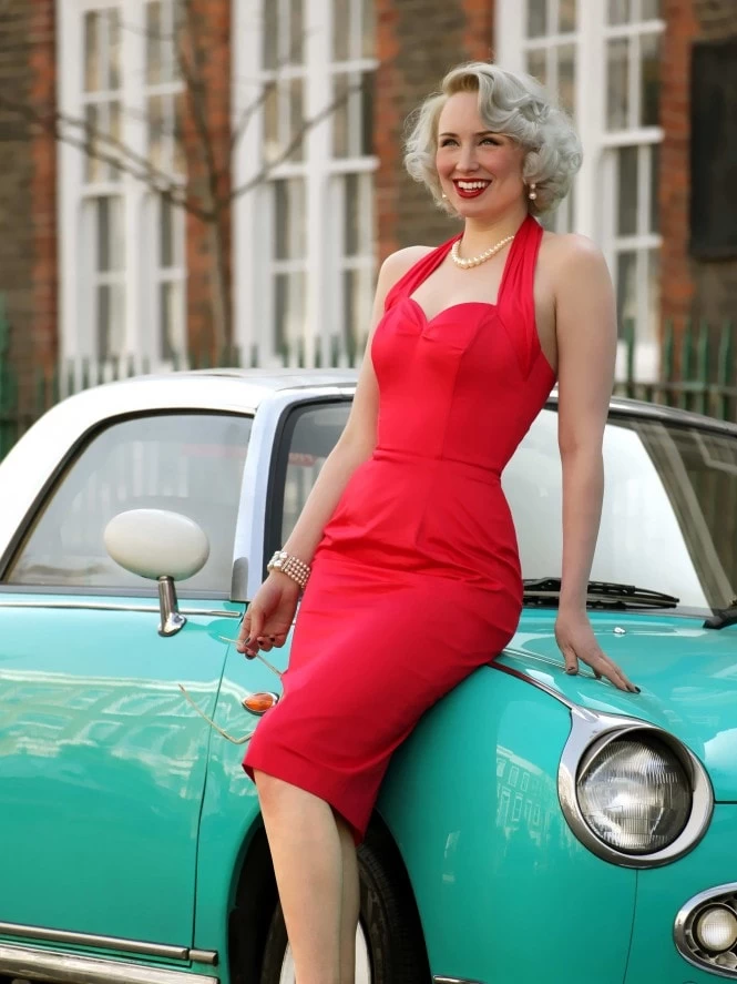 Our beautiful Halterneck Pencil Dresses work wonderfully in our cotton sateen fabric. They can be worn anywhere, from the office to a summer picnic, it all depends on how you dress them up or down! Our signature design removes the need for any extra shapewear, with the boned and lined bodice that lifts the bust into a subtle bullet, and gently nips the waist for a torso that would make Jayne Mansfield envious! Made in London, England