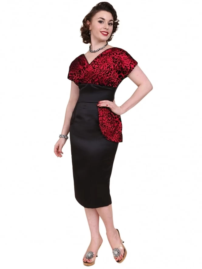 - 1950s style Jezebel Dress with wrap top and peplum