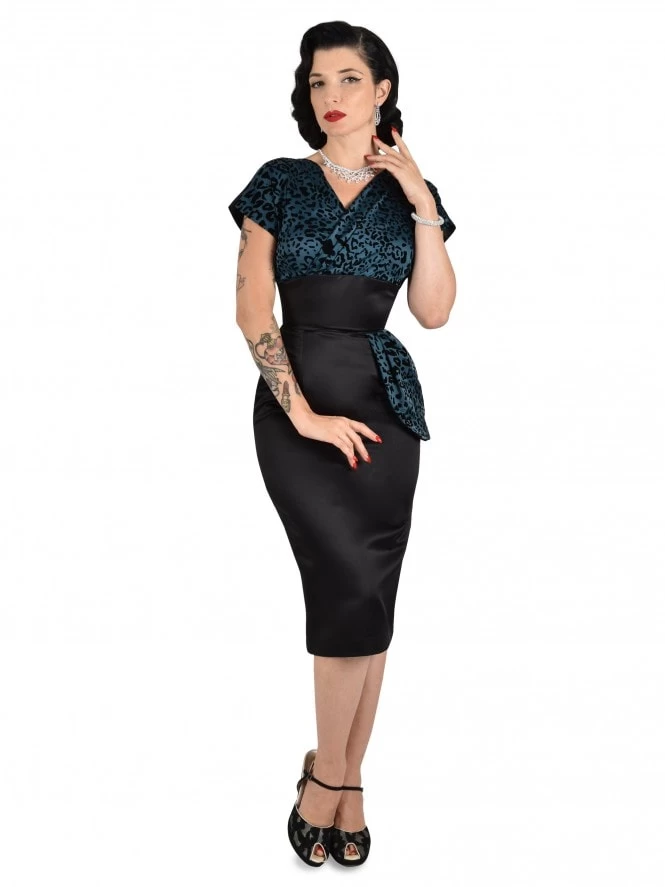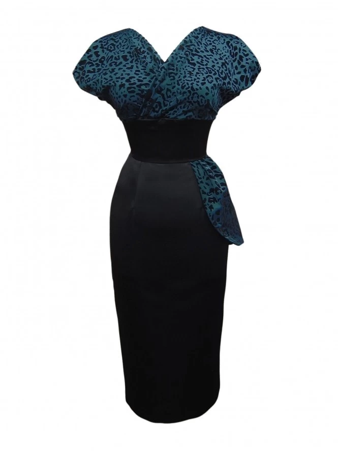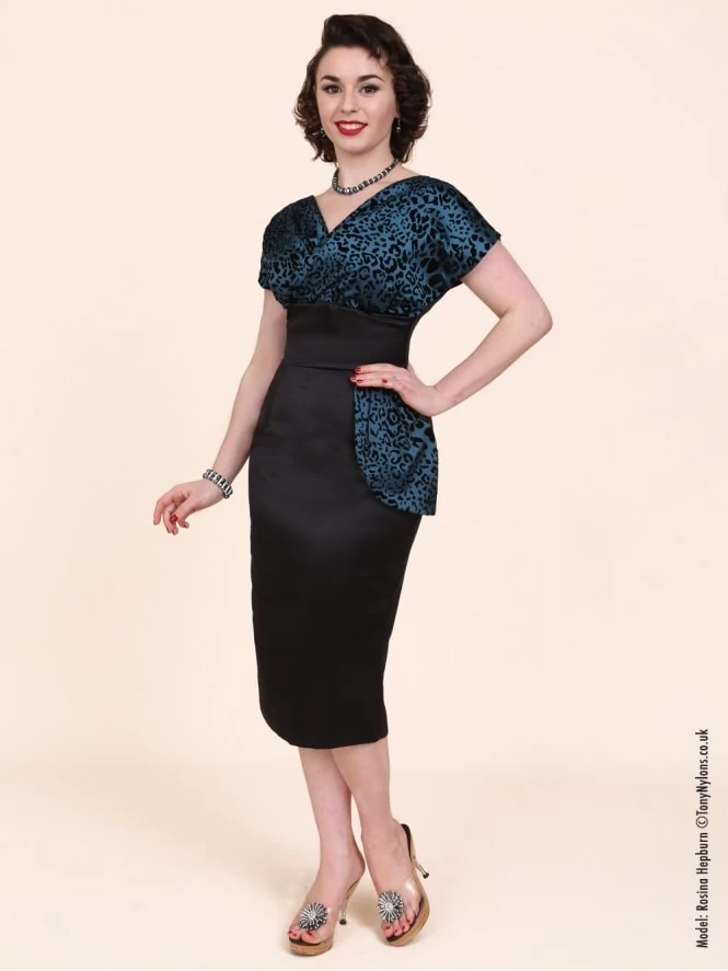 - 1950s style Jezebel Dress with wrap top and peplum