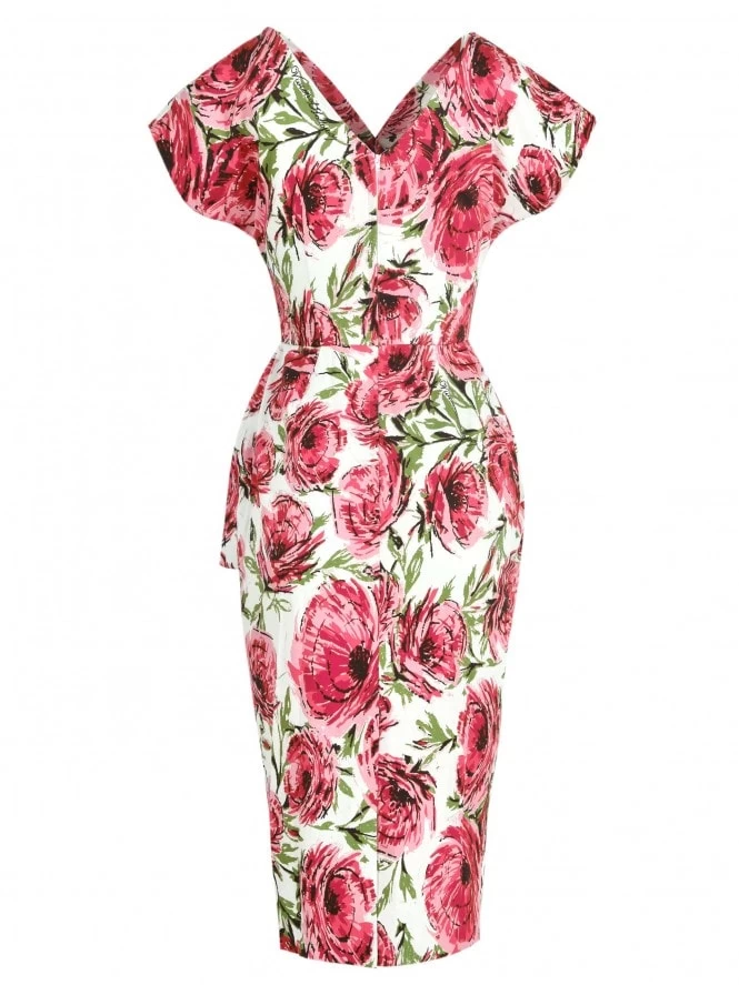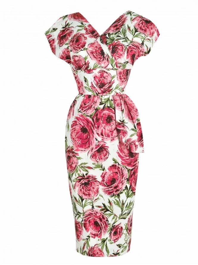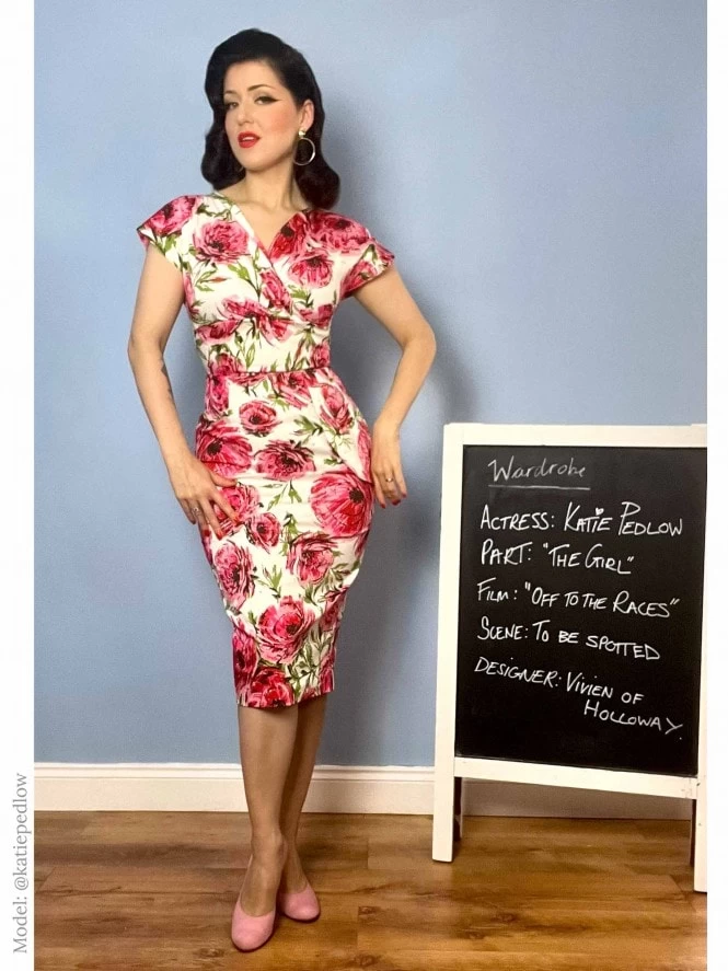 - 1950s style Jezebel Dress with wrap top and peplum