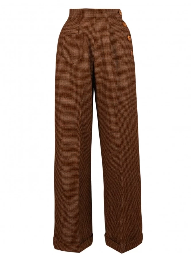 Our signature 1940s Katharine trousers, which have been a real favourite with our customers for years. Based on an original WWII pattern, these super slacks feature an authentic long rise and high waist, cuffs, four side buttons and a small patch pocket on the front. Screen siren or girl next door, everyone can be a vintage vixen in a pair of these flattering trousers.