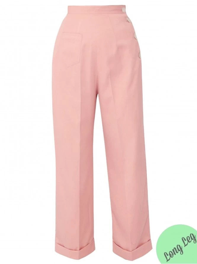 Our signature 1940s Katharine trousers, which have been a real favourite with our customers for years. Based on an original WWII pattern, these super slacks feature an authentic long rise and high waist, cuffs, four side buttons and a small patch pocket on the front. Screen siren or girl next door, everyone can be a vintage vixen in a pair of these flattering trousers.