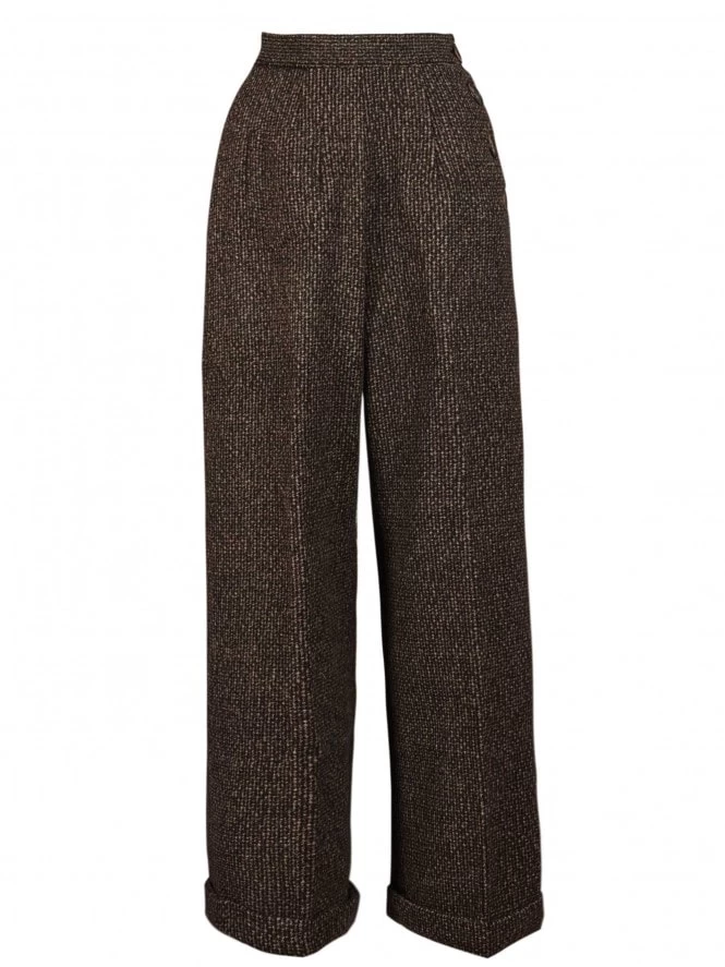 Our signature 1940s Katharine trousers, which have been a real favourite with our customers for years. Based on an original WWII pattern, these super slacks feature an authentic long rise and high waist, cuffs, four side buttons and a small patch pocket on the front. Screen siren or girl next door, everyone can be a vintage vixen in a pair of these flattering trousers.
