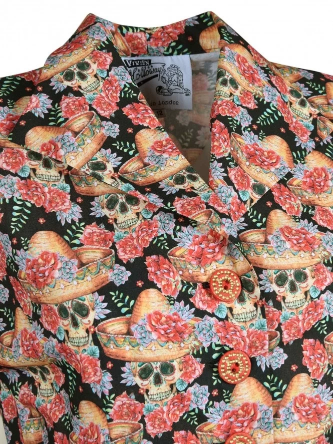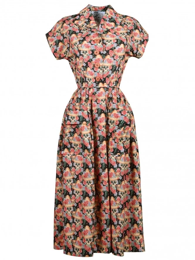 The Kitty has a cutaway collar, cap sleeves, lightly padded shoulders and lovely large pockets on her Pleated skirt. She has Vintage Buttons down the front and side zip. What more could you want from a 50s style day dress!