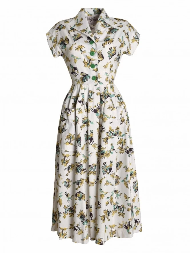 New Kitty Dress in a gorgeous new range of exclusive bespoke prints celebrating travel around the world, in a totally authentic Vintage style!