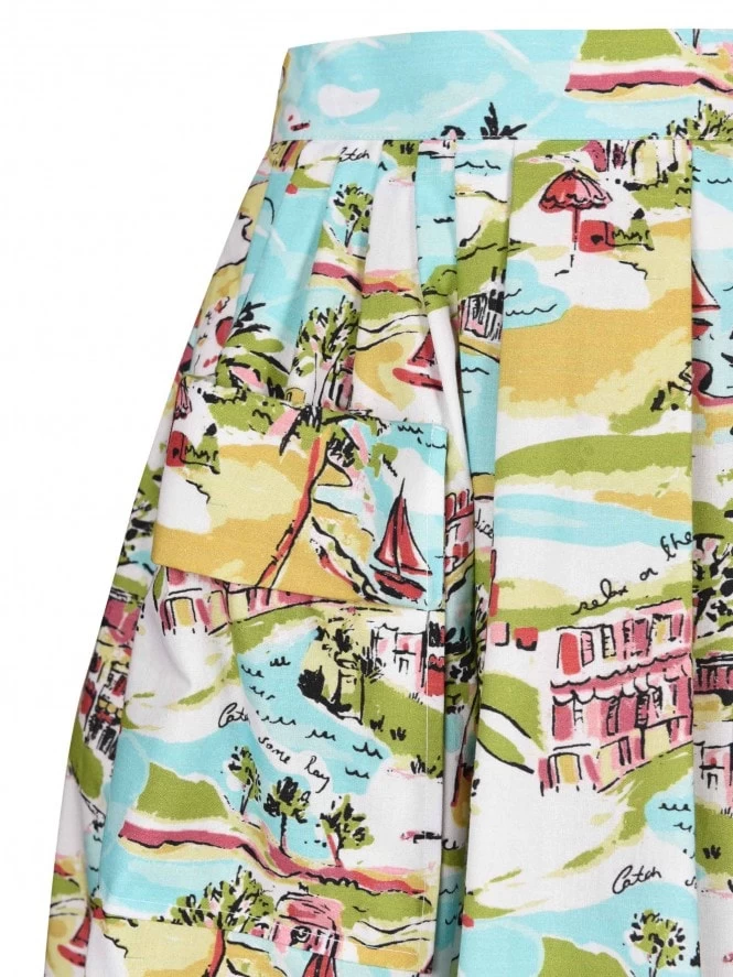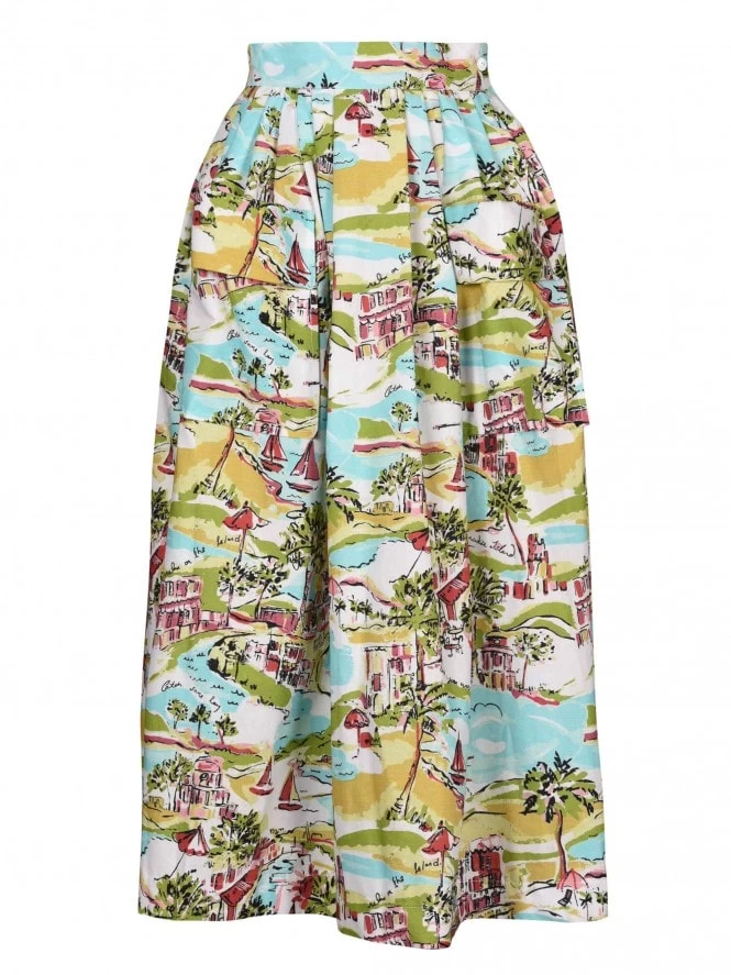 Available in plain colours but also coming in a wide variety of beautiful unique prints, the skirt has a back zip and button to cinch that waist in.