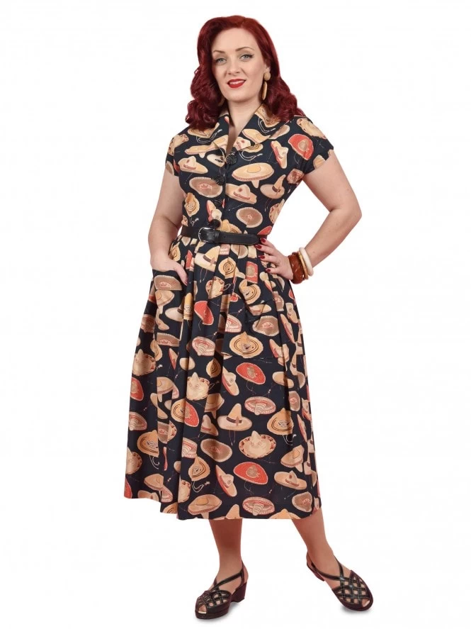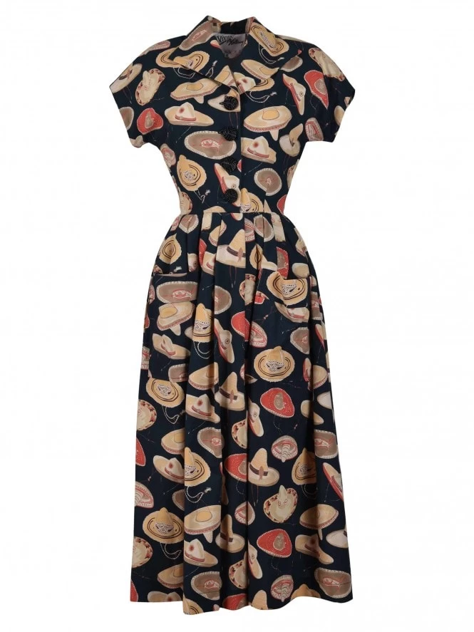 New Kitty Dress in a gorgeous new range of exclusive bespoke prints celebrating travel around the world, in a totally authentic Vintage style!
