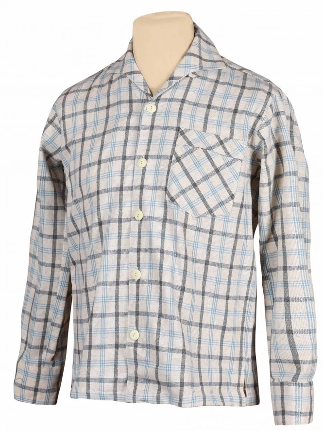 Men Long-Sleeved Cream Light Blue Shirt