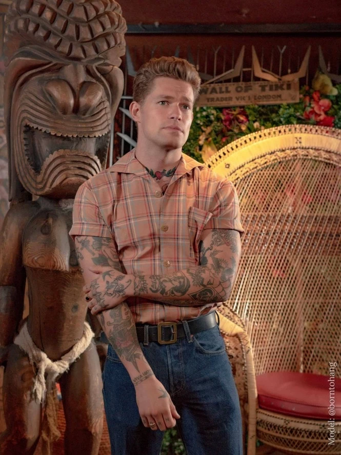 Stylish leisure shirts for men about town all year round! Featuring the same rolled collar, authentic loop detail, breast patch pocket and carefully placed pleats at the yoke as our original short-sleeved shirt – this classic version has full-length sleeves finished with a buttoned cuff. Hard-wearing, ready for work or play, they’re sure to prove popular with style-loving rockabilly cats everywhere. Vivien of Holloway – making guys more gorgeous too!