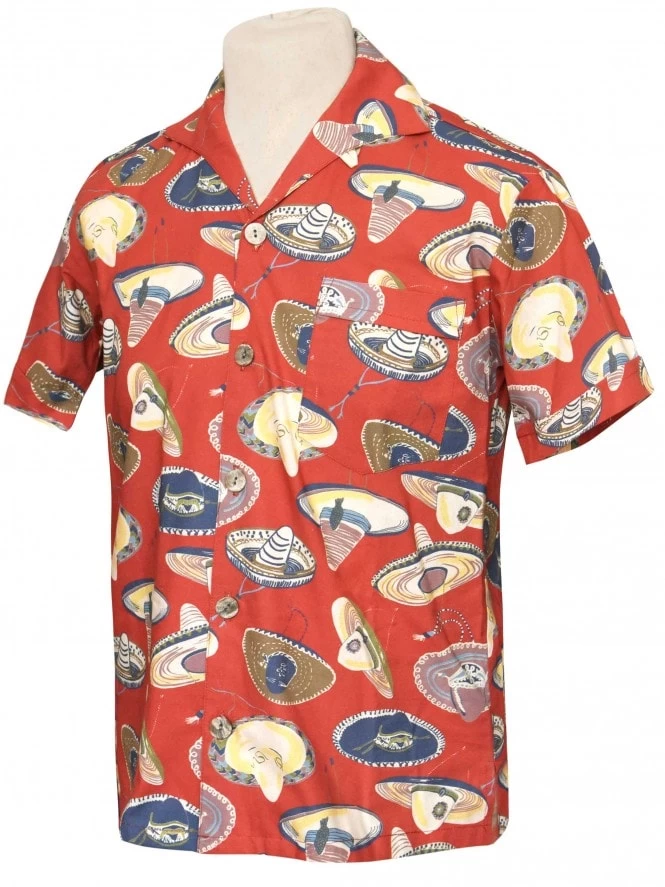 Men Short-Sleeved Sombrero Large Rust Shirt