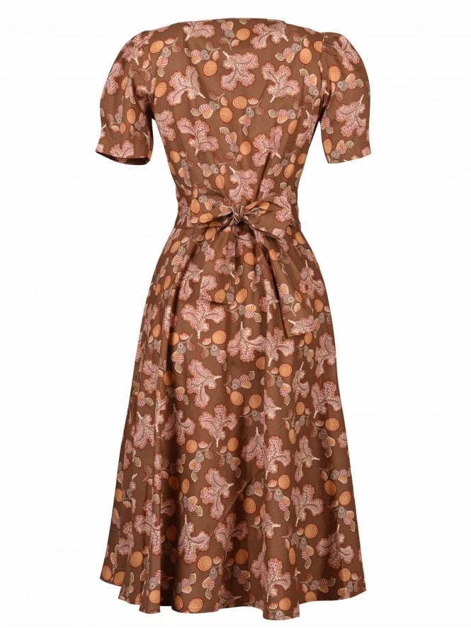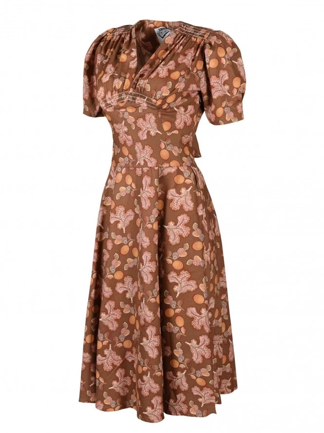 This fabulous Classic 40’s dress has a unique way of fitting. As well as having a very flattering bust detail that maximises a small bust but magically minimalises a large one she has a beautiful rushed yoke detail and puff sleeves. The tie waist allows you to decide just how tight she should fit. If you are short in the waist you simply fold the tie in half before tying in and voile fits like a dream. You will wonder how you lived without her!