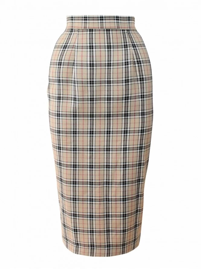 Available in a range of plain fabrics, as well as authentic tweed-look and prince of Wales checked cloth, each one is cut to make the most of your waist and hips, so do ensure you measure yourself carefully for the most flattering fit.