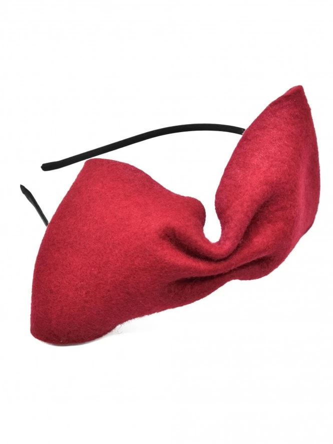 This wonderful head piece is made of a thick felt bow and a thin black headband which is the perfect size to be hidden in amongst a gorgeous updo.