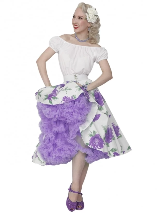 No Halterneck circle dress is complete without a petticoat underneath! With an array of colours available, you can choose to match or contrast with your 1950s dress. The frothy layers of chiffon add volume, and this in turn helps make your waist look absolutely tiny. If you have slim hips, you can choose to wear two petticoats layered together, for maximum impact! Not only do they look amazing under our dresses, but when you take a spin on the dance floor, they look spectacular whilst also protecting your modesty!