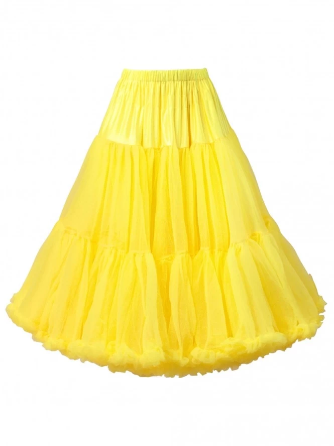 No Halterneck circle dress is complete without a petticoat underneath! With an array of colours available, you can choose to match or contrast with your 1950s dress. The frothy layers of chiffon add volume, and this in turn helps make your waist look absolutely tiny. If you have slim hips, you can choose to wear two petticoats layered together, for maximum impact! Not only do they look amazing under our dresses, but when you take a spin on the dance floor, they look spectacular whilst also protecting your modesty!