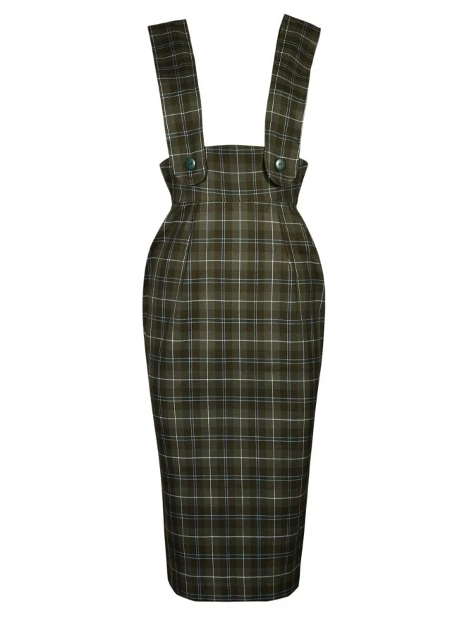 How about this little number? Our Pinafore strap skirt strikes just the right balance between sassy siren and demure secretary… it’s all about how you wear it! Our classic rockabilly-style 1950s style pencil skirt has been transformed by adding an extra-wide waistband and button-on braces for a classic vintage look that’s available in a selection of tartan and plain fabrics. The key to getting the perfect vintage wiggle is all in the fit – it should be tight enough to stretch ever-so-slightly over your curves, but not too much – you do need to sit down! Or perhaps you don’t… Either way, do measure yourself precisely and compare with our size chart before buying.