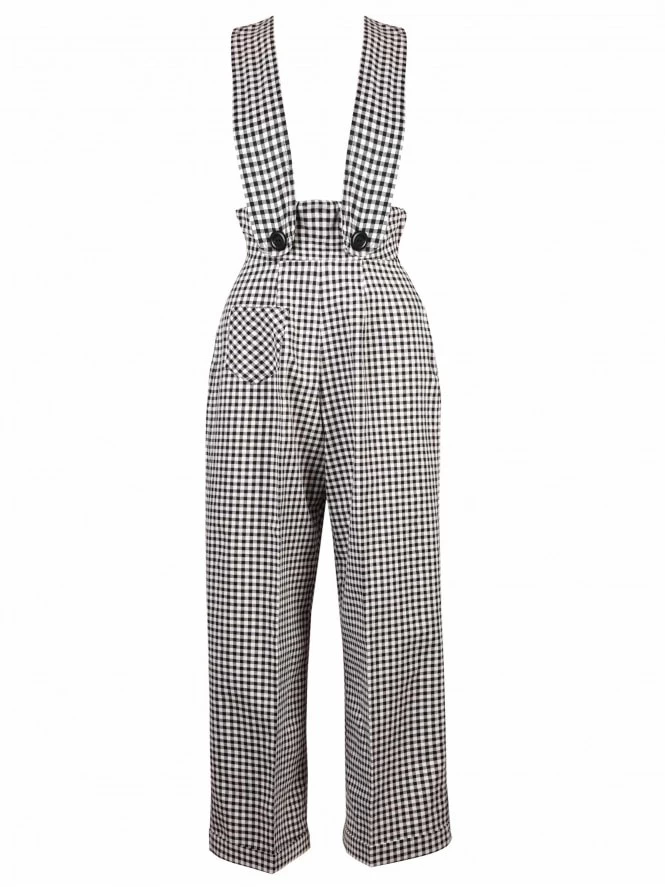 Now they’re back and better than ever! Inspired by those great wartime girls in the Land Army, these slacks feature an authentic high curved waist to cinch you in. A long rise for that authentic ’40s draped look. The Pinafore is made to tease with its wide straps. They have a side zip and a flattering wide-leg to help things really swing on the dance floor!