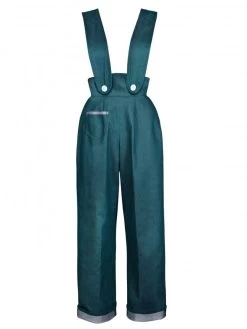 Now they’re back and better than ever! Inspired by those great wartime girls in the Land Army, these slacks feature an authentic high curved waist to cinch you in. A long rise for that authentic ’40s draped look. The Pinafore is made to tease with its wide straps. They have a side zip and a flattering wide-leg to help things really swing on the dance floor!