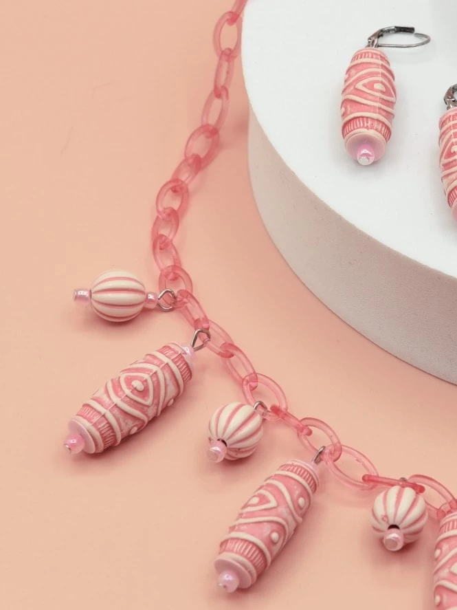 Add a little extra to your jewellery collection with this fun vintage novelty-inspired necklace and earrings set handmade in Hollywood, USA. Don’t forget to look at our bangles selection to match!