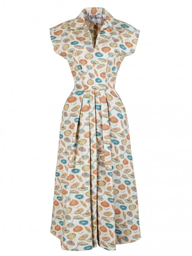 This is one from our Pink Label range. These luxurious dresses are made with our own Bespoke prints. Made by us exclusively with a heavy influence from Vintage fabrics.