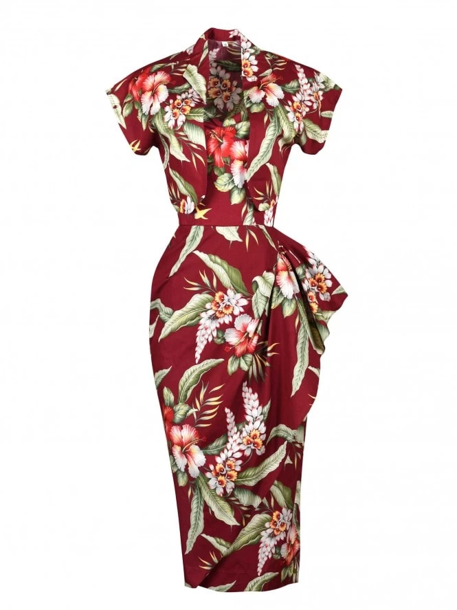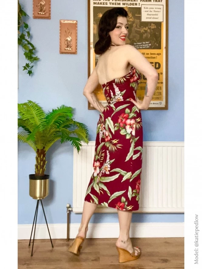 Our Sarong and Bolero Sets are inspired by 1940s starlet Dorothy Lamour, who starred in a number of South Pacific-themed films and musicals back in the Golden Era. We’ve created our own version with a boned bodice to nip in your waist and a perfectly draped sarong skirt to hide any unwanted bulges or give the impression of more shapely hips whichever is needed.
