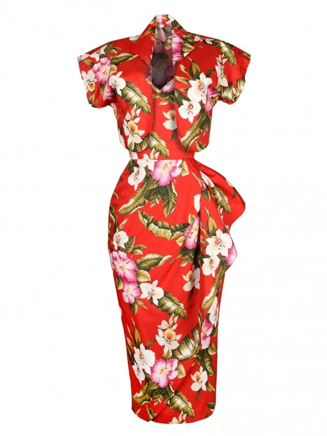 Our Sarong and Bolero Sets are inspired by 1940s starlet Dorothy Lamour, who starred in a number of South Pacific-themed films and musicals back in the Golden Era. We’ve created our own version with a boned bodice to nip in your waist and a perfectly draped sarong skirt to hide any unwanted bulges or give the impression of more shapely hips whichever is needed.