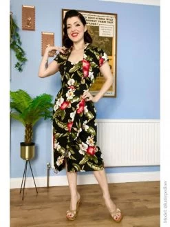 Our Sarong and Bolero Sets are inspired by 1940s starlet Dorothy Lamour, who starred in a number of South Pacific-themed films and musicals back in the Golden Era. We’ve created our own version with a boned bodice to nip in your waist and a perfectly draped sarong skirt to hide any unwanted bulges or give the impression of more shapely hips whichever is needed.