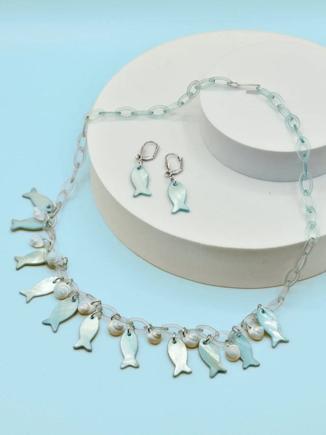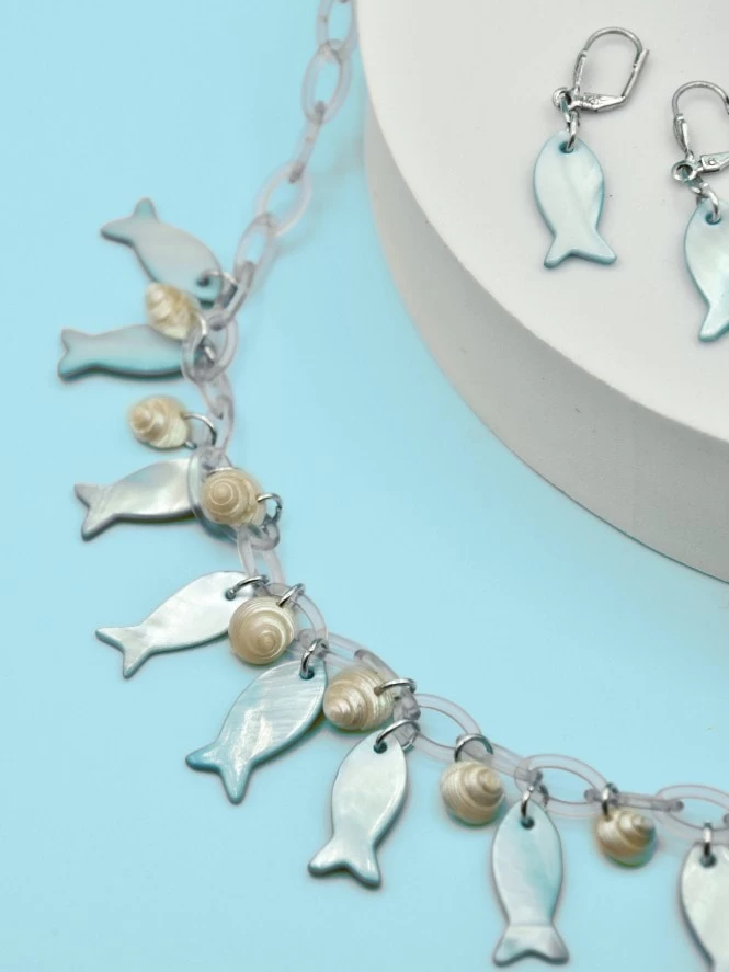 Add a little extra to your jewellery collection with this fun vintage novelty-inspired necklace and earrings set handmade in Hollywood, USA. Don’t forget to look at our bangles selection to match.