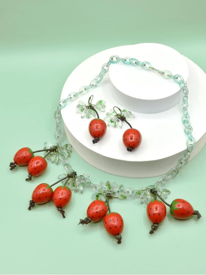 Add a little extra to your jewellery collection with this fun vintage novelty inspired necklace and earrings set handmade in Hollywood, USA. Don’t forget to look at our bangles selection to match.